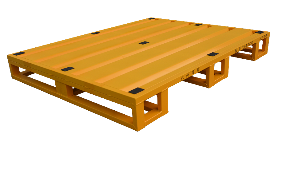 1、川字型鋼托盤(pán):托盤(pán)底部有三根主梁,呈“川”字形故而得名。川字型托盤(pán)可實(shí)現(xiàn)叉車或托盤(pán)搬運(yùn)車從四個(gè)方向插入,可配合橫梁式貨架來(lái)承載貨物。