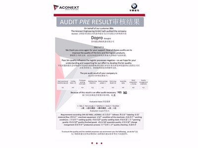 寶馬供應商審核證書